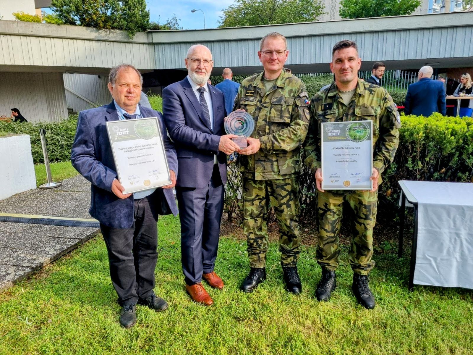 Vojenský výzkumný ústav vystavuje na IDET 2023 dvě novinky: „Komunikační rušič STARKOM“ ve spolupráci s AČR a „Vysoce citlivý detektor nervově paralytických látek DAPH“. Obě novinky přihlásil do soutěže, která byla v letošním roce velice nabitá. V soutěži bylo přihlášeno 19 exponátů a státní podnik VVÚ v ní byl velmi úspěšný. V historii Mezinárodního veletrhu obranné a bezpečnostní techniky IDET je to poprvé, kdy odborná komise udělila 2 ocenění jednomu vystavovateli.